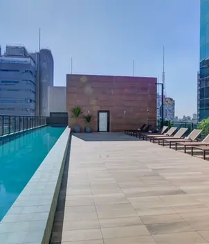 piscina no rooftop com vista panorâmica;